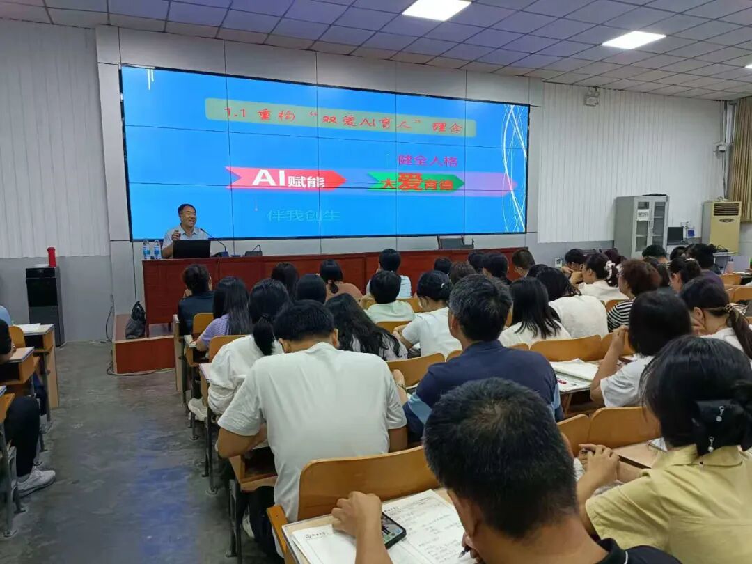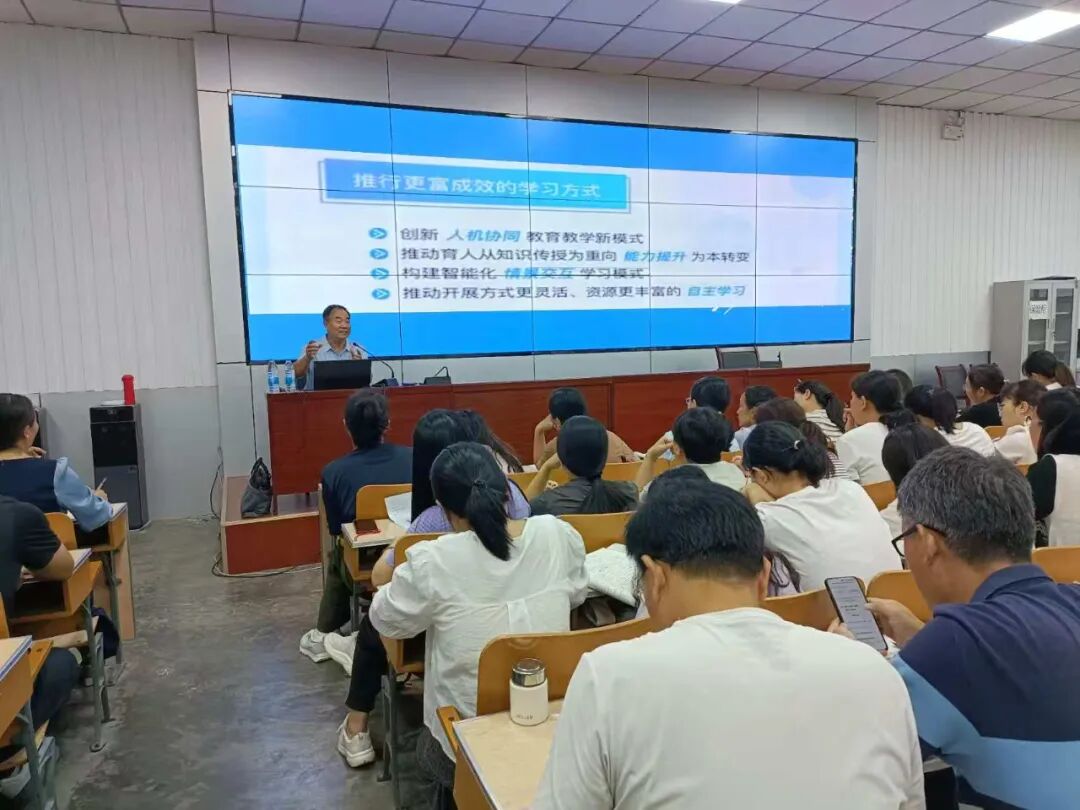 为推动人工智能与教育教学深度融合,全面提升教师数字化教学能力,9 月16日下午,我校举办了AI 人工智能教学应用专题培训会。本次培训会由副校长胡玉波主持,全体教师齐聚一堂参与学习,特邀教育专家、课改专家于春祥老师担任主讲嘉宾,为与会教师带来一场精彩纷呈、干货满满的知识盛宴。